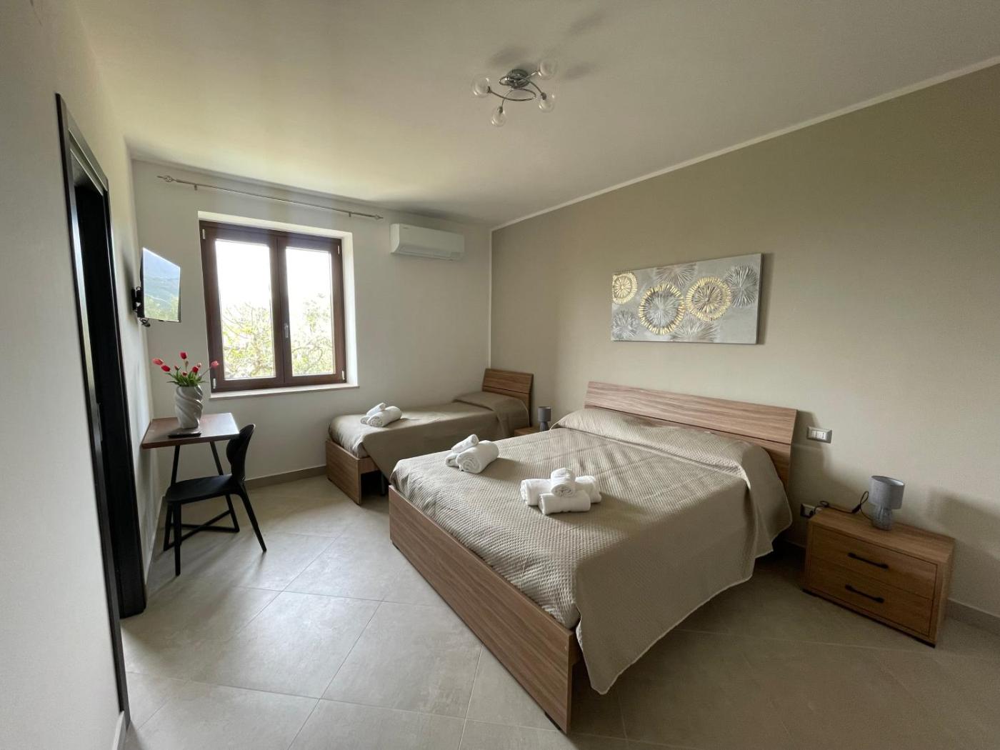 Camera Tripla con Bagno Privato. Providing free toiletries, this triple room includes a private bathroom with a shower, a bidet and a hairdryer. The air-conditioned triple room provides a flat-screen TV, a minibar, a wardrobe, an electric kettle as well as garden views. The unit offers 2 beds. ;