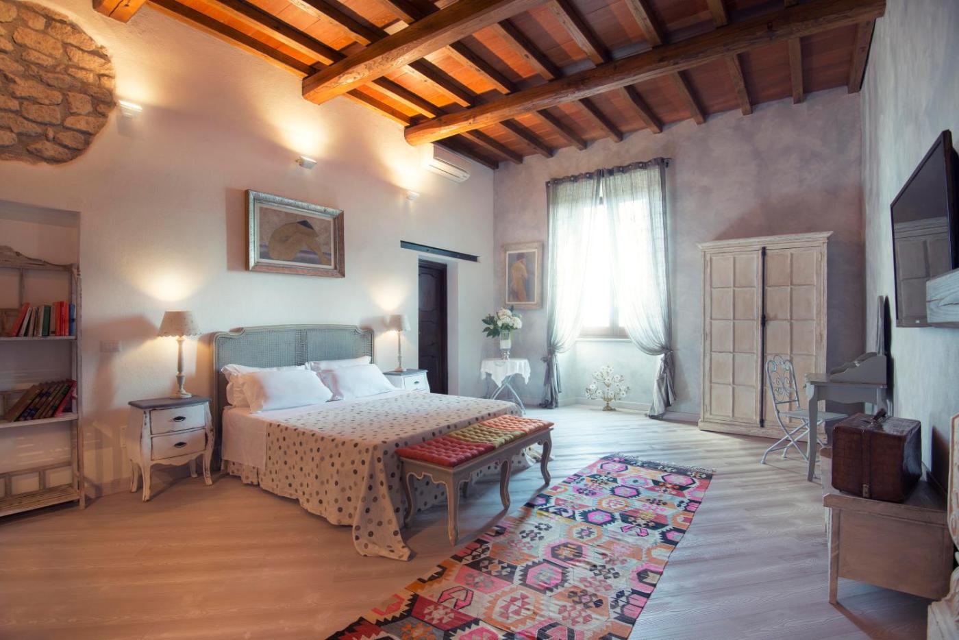 Suite. Suite spaziose con arredamento tradizionale, connessione internet gratuita, pavimenti in parquet o in cotto e bagno privato. Alcune sono dotate di balcone, soffitti con travi a vista e pareti in pietra a vista. ;