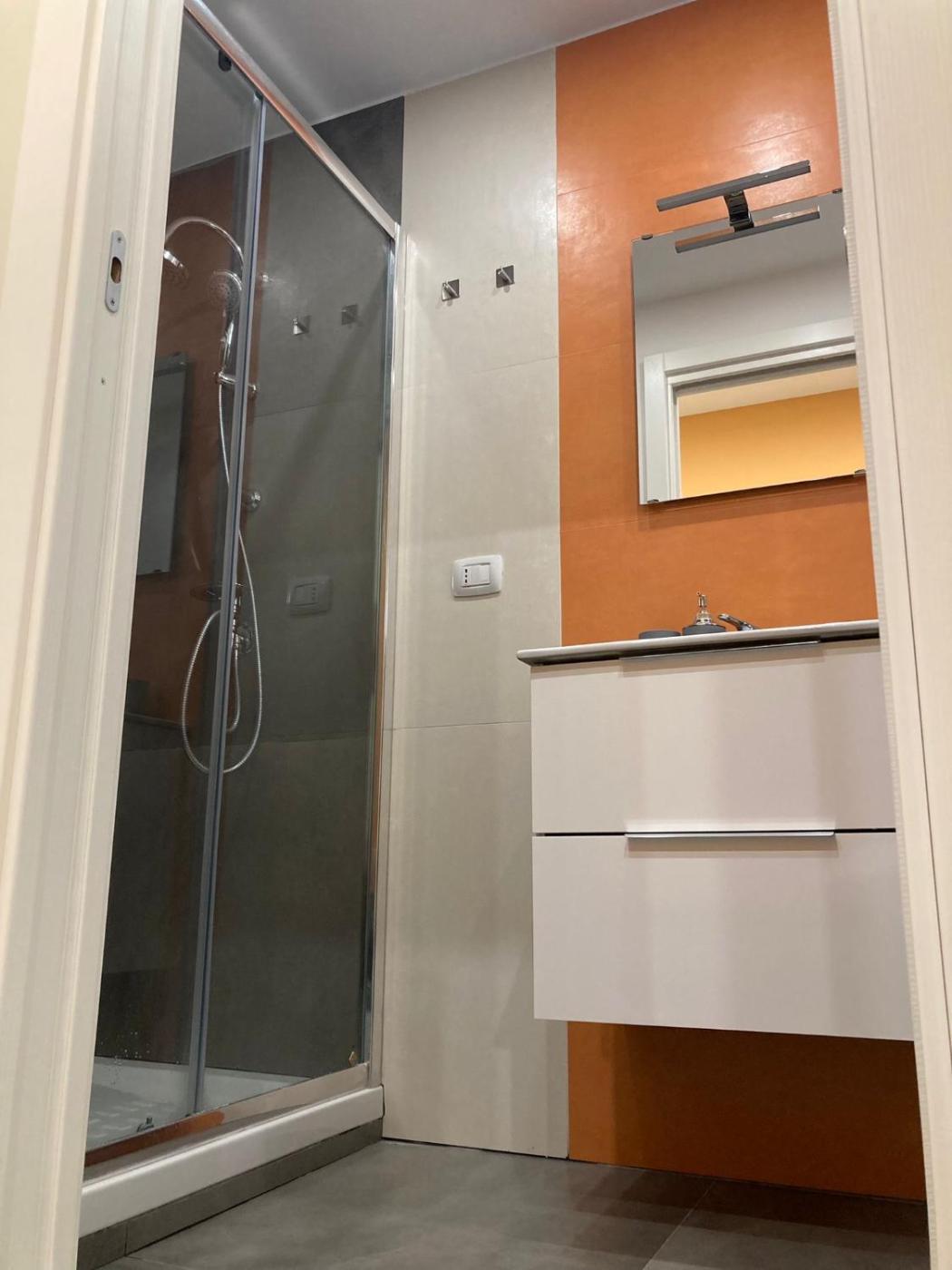Camera Matrimoniale con Bagno Privato. The double room includes a private bathroom equipped with a shower, a bidet and a hairdryer. The double rooms kitchen, which features a refrigerator and kitchenware, is available for cooking and storing food. The air-conditioned double room offers a flat-screen TV with streaming services, a tea and coffee maker, a seating area, a dining area as well as a quiet street view. The unit offers 3 beds. ;